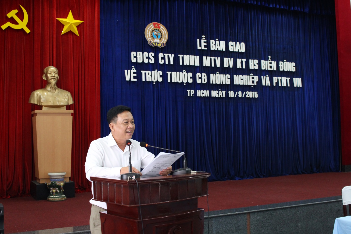 Sau quá trình chuẩn bị, ngày 22/06/2015 tại Hội trường Lầu 4 (số 2 – 4 – 6 Đồng Khởi, Phường Bến Nghé, Quận 1, Tp.HCM) lễ bàn giao Công đoàn cơ sở Công ty TNHH MTV Dịch vụ Khai thác Hải sản Biển Đông từ Tổng công ty Thủy sản Việt Namvề trực thuộc Công đoàn Bộ NN&PTNT Việt Nam đã diễn ra thành công tốt đẹp.